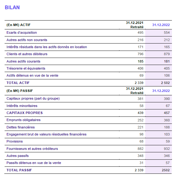 La Dette Nette Comptable5 s’établit en conséquence à 143 millions d’euros au 31 décembre 2022 vs. 67 millions d’euros un an plus tôt, représentant 31% des capitaux propres et 0,9 fois l’EBITDA 2022. Elle est à mettre en regard notamment des 44 millions d’actions propres (représentant 124 millions d’euros sur la base du cours moyens des 20 derniers jours).