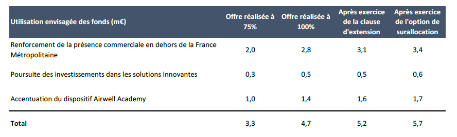 Pour atteindre ces objectifs, AIRWELL envisage d’allouer le produit net de l’augmentation de capital issue de l’Offre de la manière suivante :
