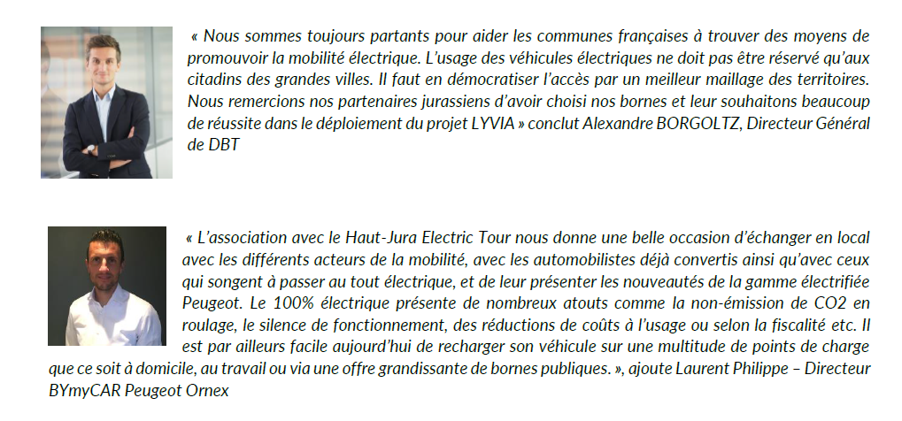 DBT, acteur engagé dans la mobilité électrique, est partenaire du Haut-Jura Electric Tour aux côtés de BYmyCAR Peugeot